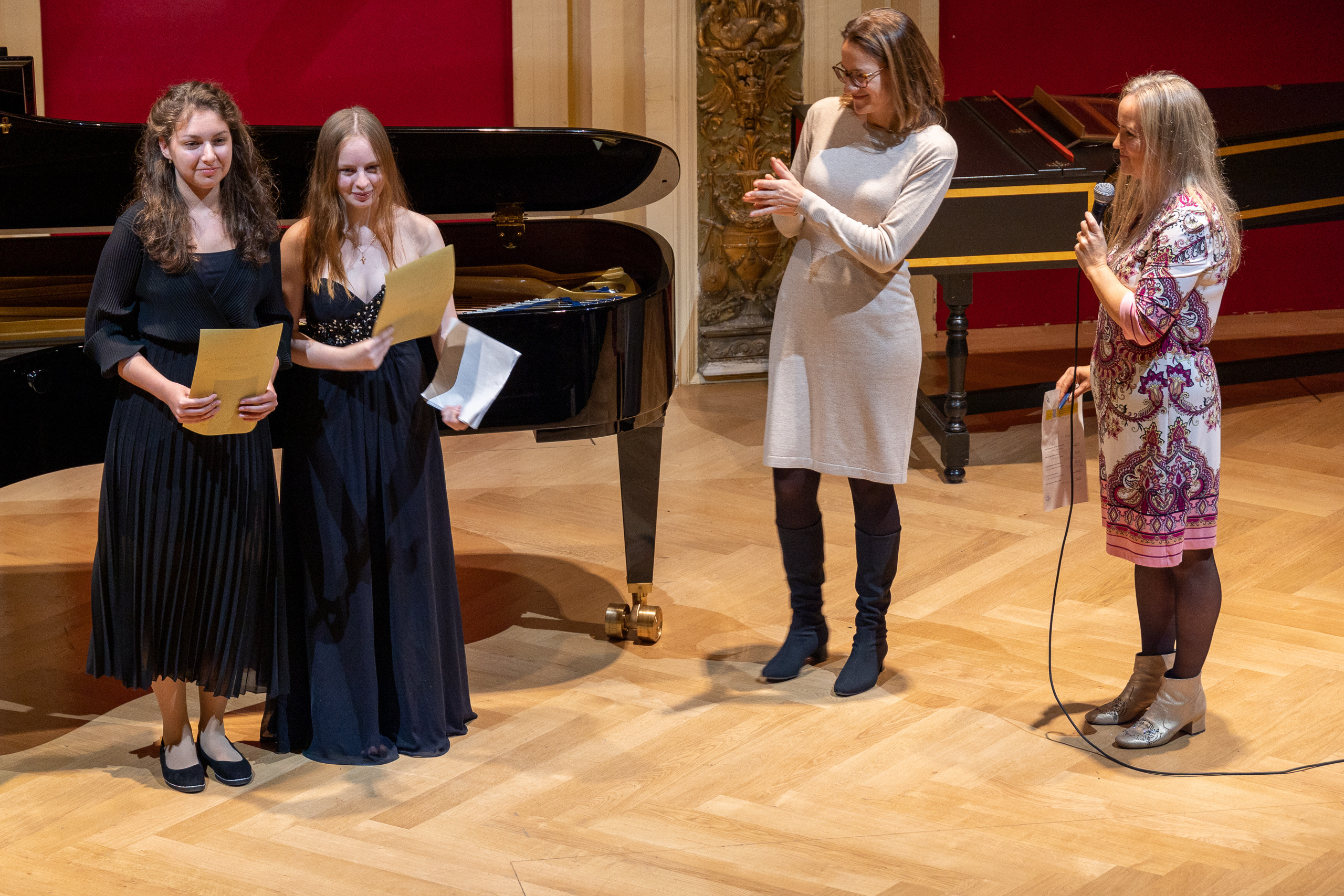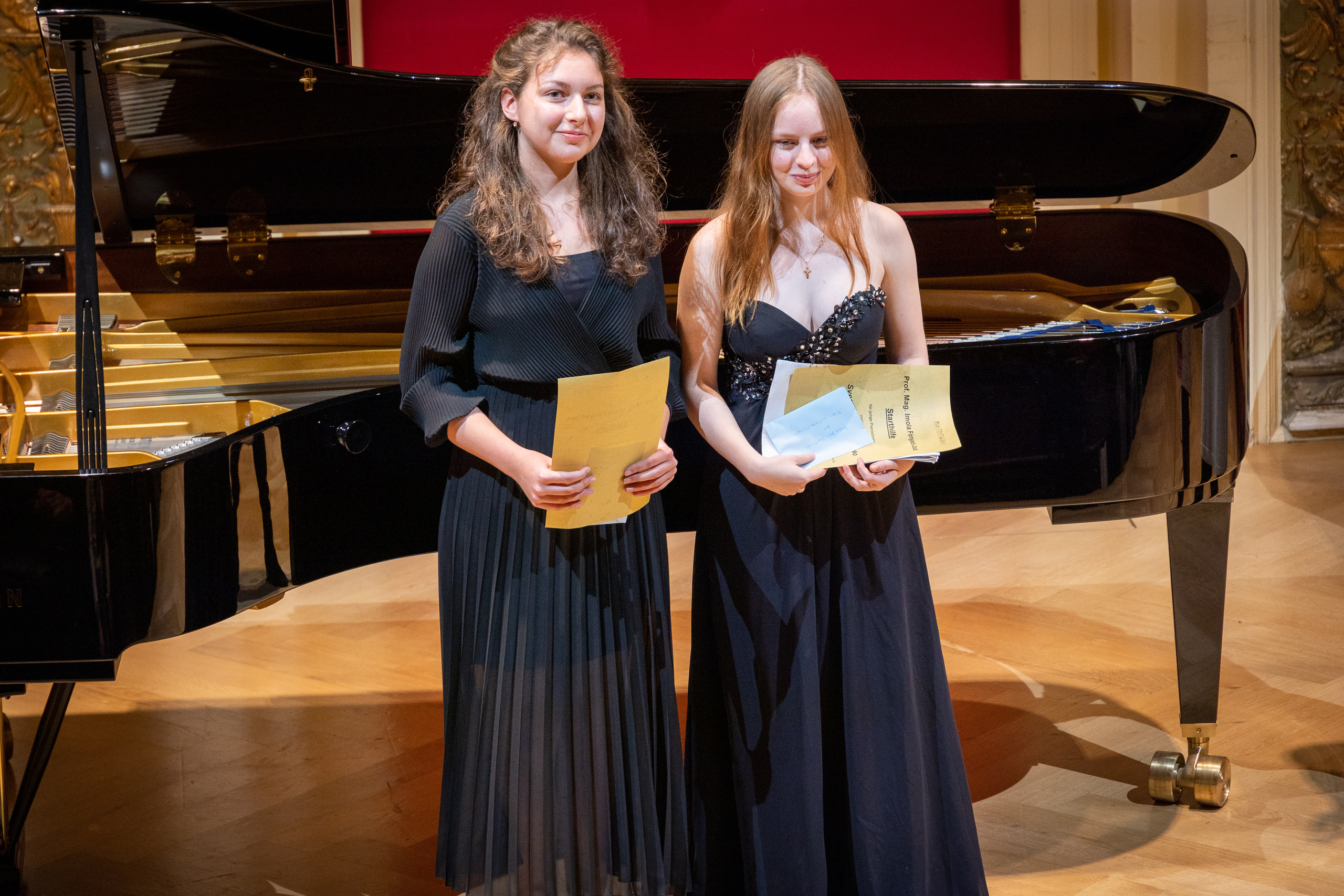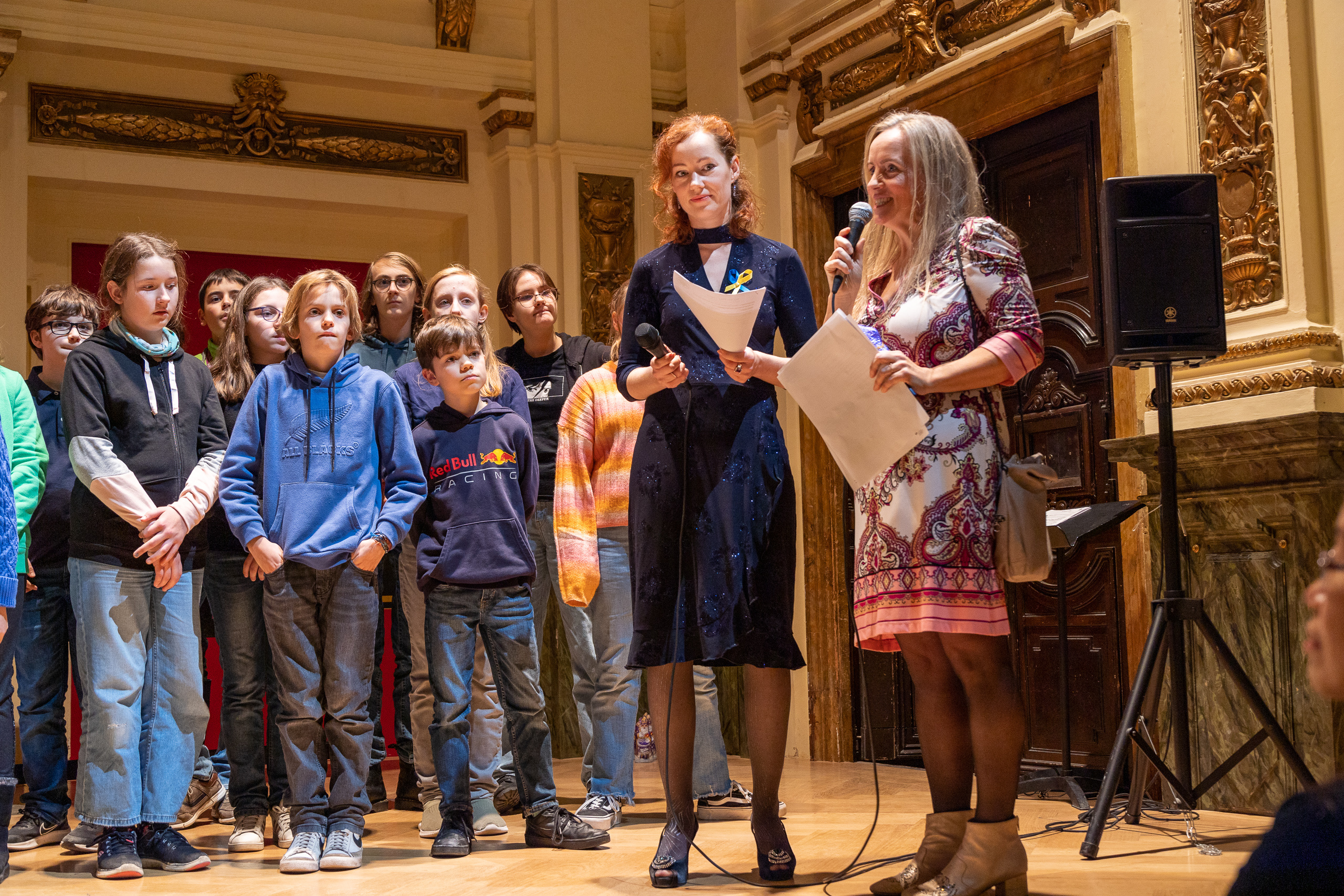 Am 7. Dezember 2022 fand im Ehrbarsaal unser zweites Benefizkonzert für junge bedürftige Musiker_innen aus der Ukraine statt. Junge talentierte Künstler_innen aus der Ukraine und aus Österreich spielten ihre Musik für einen guten Zweck, das Publikum nahm an den bewegenden Geschichten der geflüchteten Jugendlichen teil, die ihr Leben in Wien neu aufzubauen versuchen und die strahlenden Augen und Stimmen der Jüngsten im Kinderchor der Wiener Chorschule an der mdw machten den Abend trotz des traurigen Anlasses des noch immer währenden Krieges zu einem herzerwärmenden Event. Neben der Interpretation des berühmten ukrainischen Weihnachtslieds Shchedryk (Carol of the Bells) zählte auch die Aufführung der Melodie von Myroslav Skoryk in vollkommener Dunkelheit im Saal als Solidaritätsbekundung mit den Menschen in der Ukraine zu den ganz besonderen Momenten des Abends. Zwei junge Pianistinnen wurden mit dem Starthilfe-Stipendium von je 600€ beschenkt, welches die Familie Fónyad-Eitzinger im Andenken an ihre verstorbenen Mutter, die em. mdw Professorin, Pianistin und Begabtenförderin Imola Joó, zu diesem Zwecke gewidmet und auch persönlich überreicht hat. Wir bedanken uns bei Familie Fonyad-Eitzinger, allen Spender_innen und vor allem bei allen Mitwirkenden für diesen gelungenen gemeinsamen Adventabend!