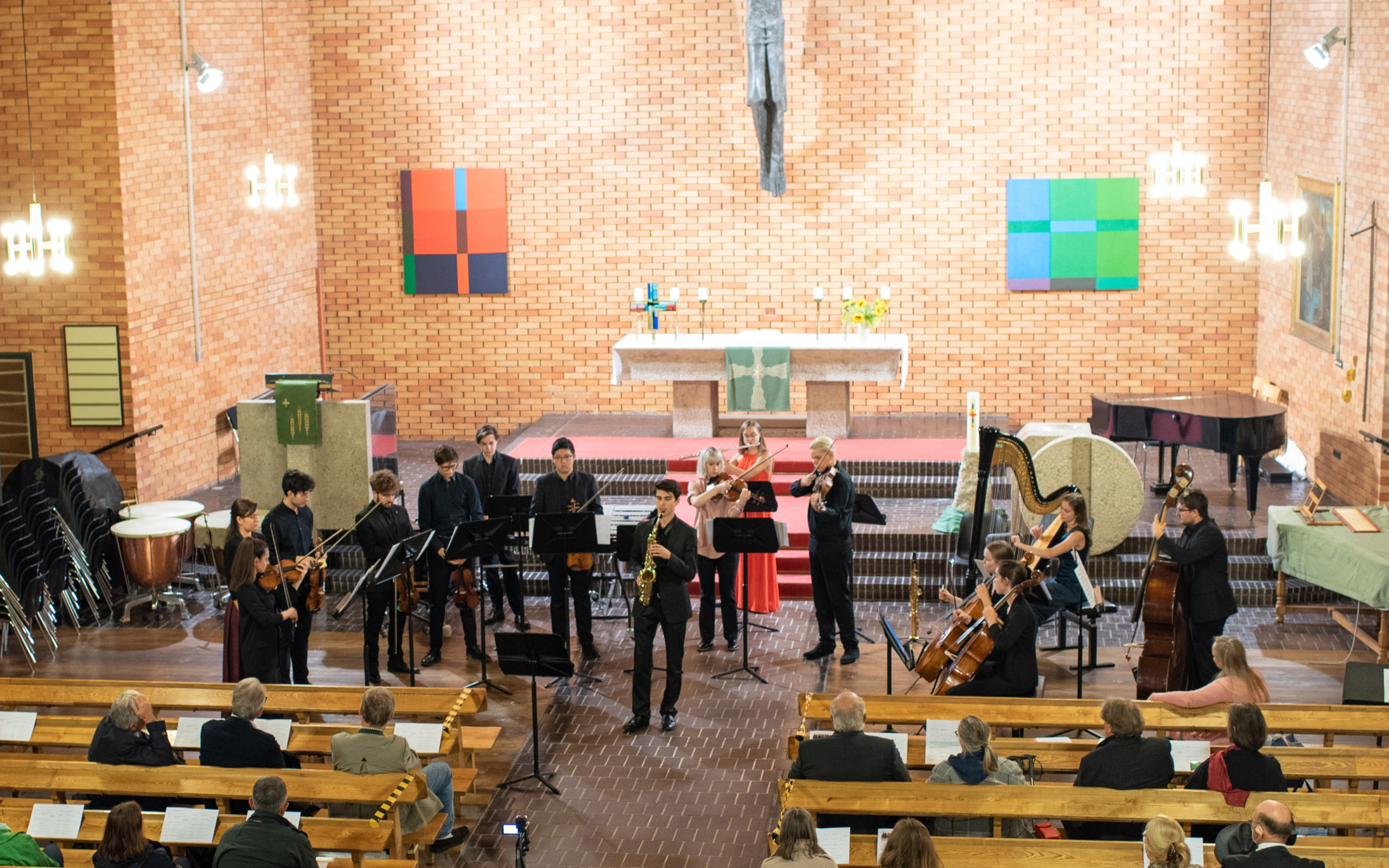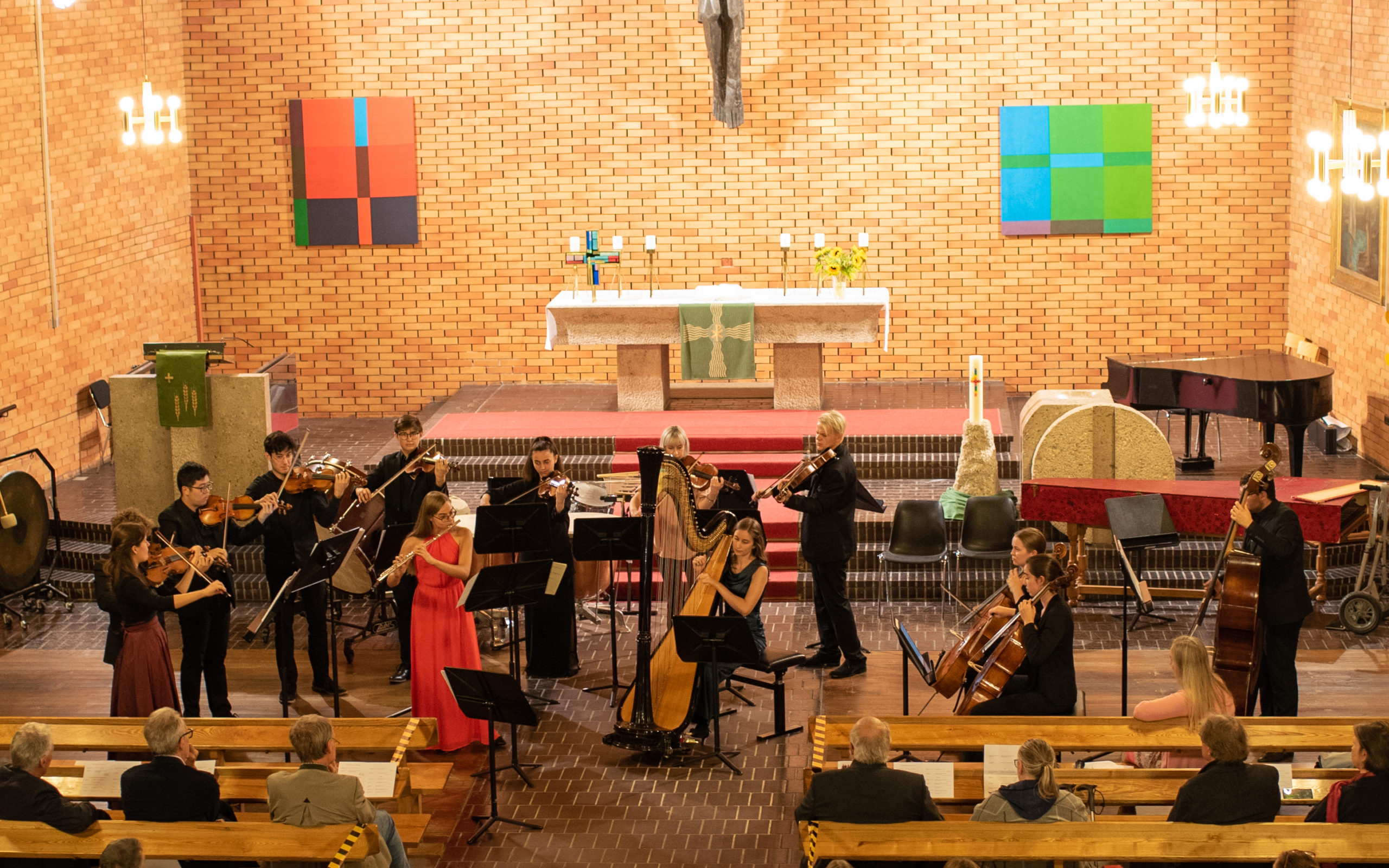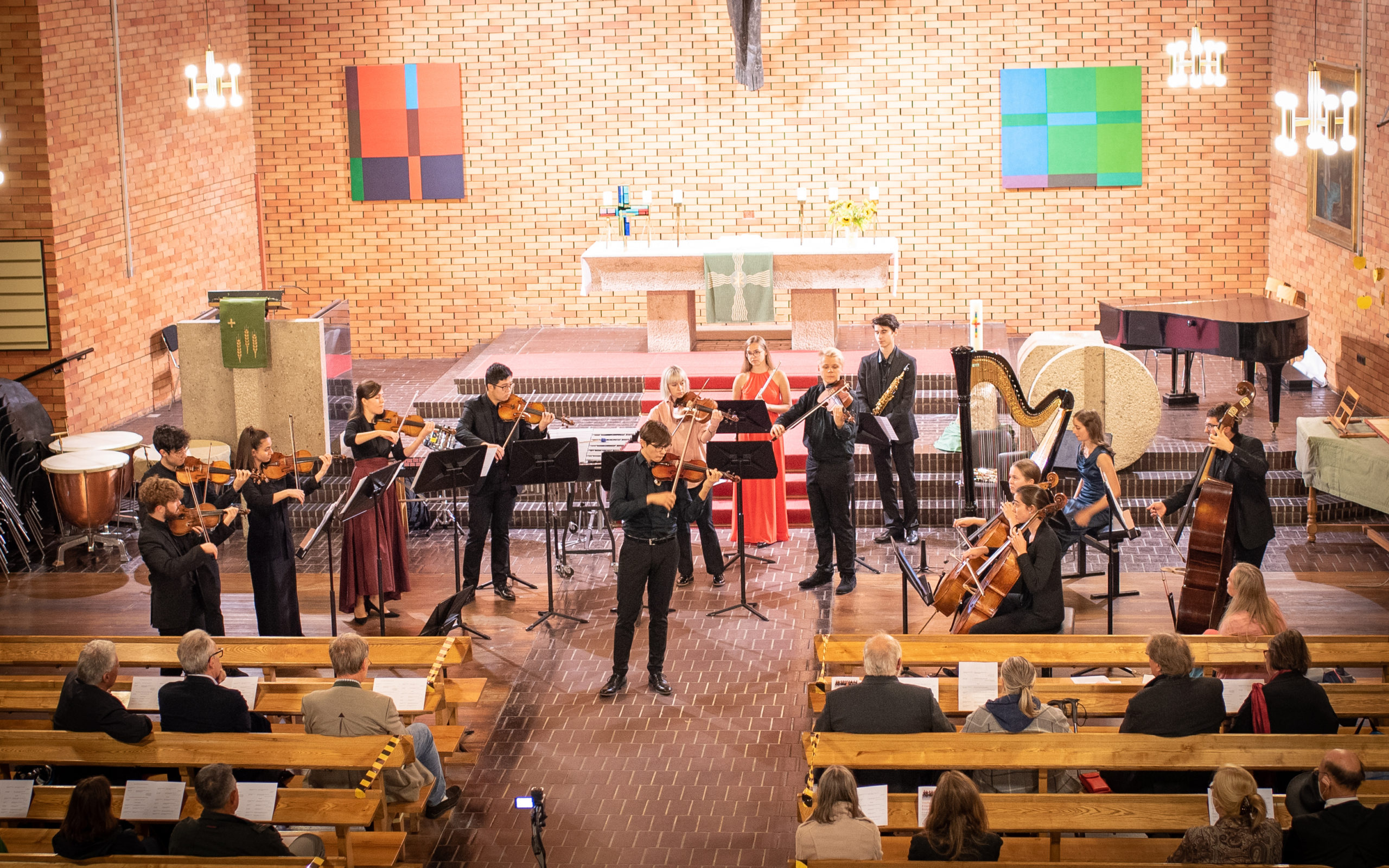 Unser ehemaliges Young Masters Ensemble ist als Rondo Solisti gerade wiedergeboren. Die jungen Spitzenmusiker_innen, die damals auf Tourneen durch die USA, Thailand und Griechenland zusammenwachsen durften, sind inzwischen als Studierende und Profis in der Musikwelt Europas unterwegs. Am Dienstag, den 21.9. spielten sie wieder zusammen und begeisterten das zahlreiche Publikum mit ihrer Musikalität und virtuosen Darbietungen, die zum großen Teil von unserem geschätzten Komponisten Linus Köhring arrangiert bzw. komponiert waren. Ganz besonders freute es uns an diesem Abend auch unsere neue Generation des Young Masters Ensemble zu präsentieren. Besonderes Highlight des Abends war die gemeinsame Aufführung der Ouvertüre zur Oper „Acide e Gallatea“ von Joseph Haydn durch diese beiden Ensembles.